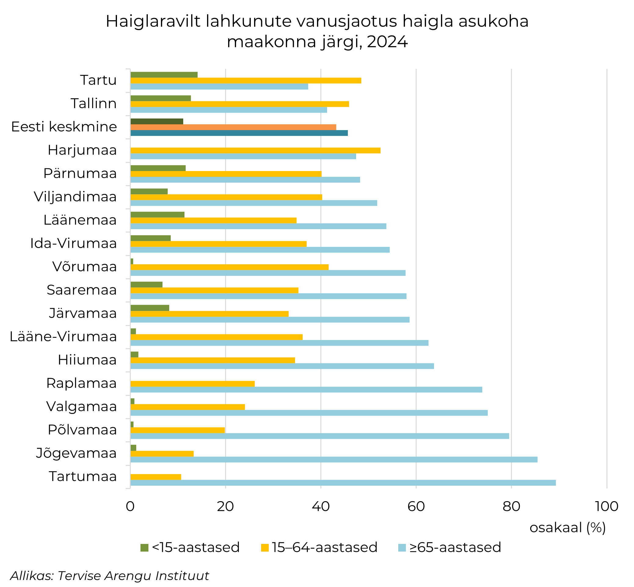 Eelmisel aastal hospitaliseeriti ligi 195 500 patsienti, neist üheksa protsenti õendusabisse. Lapsed moodustasid ravitutest üksteist protsenti, näitab Tervise Arengu Instituudi värskelt avaldatud statistika.